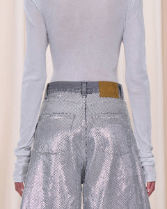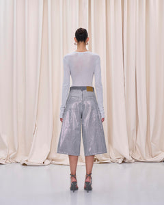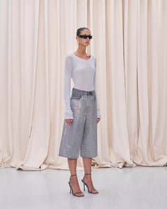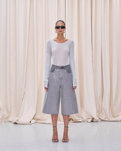 Wide-leg cotton denim bermuda with all-over front stud detailing.